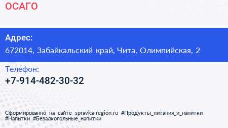 ОСАГО+ по адресу 672014, Забайкальский край, Чита, Олимпийская, 2 в дальнейшем Организация, размещена в следующих категориях: