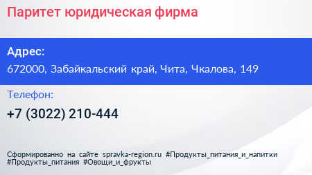 Паритет, юридическая фирма по адресу 672000, Забайкальский край, Чита, Чкалова, 149 в дальнейшем Организация, размещена в следующих категориях: