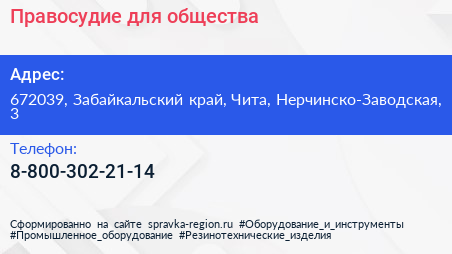 Правосудие для общества по адресу 672039, Забайкальский край, Чита, Нерчинско-Заводская, 3 в дальнейшем Организация, размещена в следующих категориях: