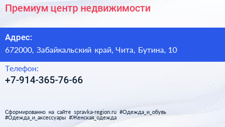 Премиум, центр недвижимости по адресу 672000, Забайкальский край, Чита, Бутина, 10 в дальнейшем Организация, размещена в следующих категориях: