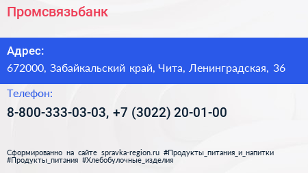 Промсвязьбанк по адресу 672000, Забайкальский край, Чита, Ленинградская, 36 в дальнейшем Организация, размещена в следующих категориях: