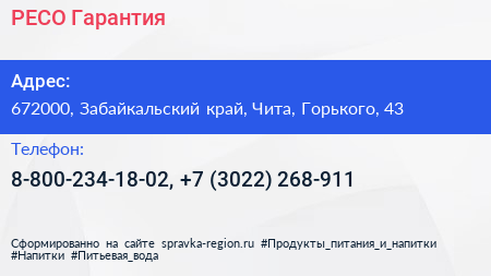 РЕСО-Гарантия по адресу 672000, Забайкальский край, Чита, Горького, 43 в дальнейшем Организация, размещена в следующих категориях: