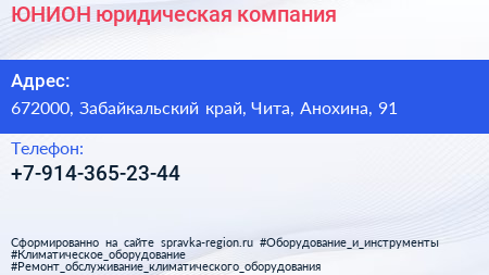 ЮНИОН, юридическая компания по адресу 672000, Забайкальский край, Чита, Анохина, 91 в дальнейшем Организация, размещена в следующих категориях: