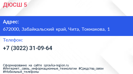ДЮСШ №5 по адресу 672000, Забайкальский край, Чита, Токмакова, 1 в дальнейшем Организация, размещена в следующих категориях: