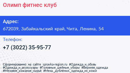 Олимп, фитнес-клуб по адресу 672039, Забайкальский край, Чита, Ленина, 54 в дальнейшем Организация, размещена в следующих категориях: