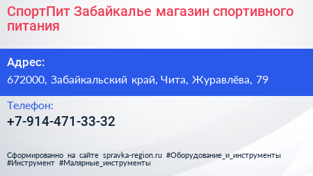 СпортПит Забайкалье, магазин спортивного питания по адресу 672000, Забайкальский край, Чита, Журавлёва, 79 в дальнейшем Организация, размещена в следующих категориях: