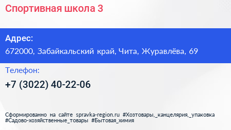 Спортивная школа №3 по адресу 672000, Забайкальский край, Чита, Журавлёва, 69 в дальнейшем Организация, размещена в следующих категориях: