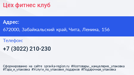 Цех, фитнес-клуб по адресу 672000, Забайкальский край, Чита, Ленина, 156 в дальнейшем Организация, размещена в следующих категориях: