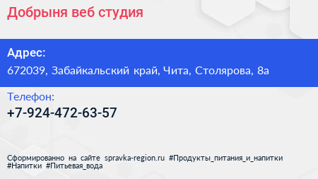 Добрыня, веб-студия по адресу 672039, Забайкальский край, Чита, Столярова, 8а в дальнейшем Организация, размещена в следующих категориях: