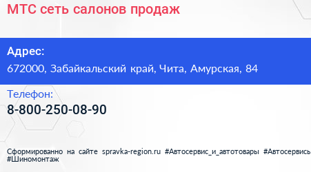 МТС, сеть салонов продаж по адресу 672000, Забайкальский край, Чита, Амурская, 84 в дальнейшем Организация, размещена в следующих категориях: