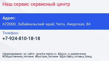 Наш сервис, сервисный центр по адресу 672000, Забайкальский край, Чита, Амурская, 84 в дальнейшем Организация, размещена в следующих категориях: