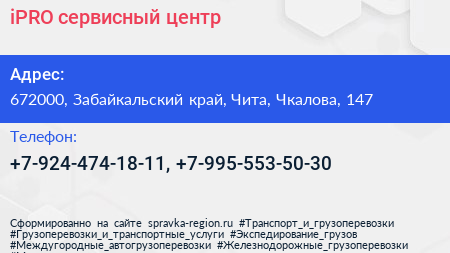 iPRO, сервисный центр по адресу 672000, Забайкальский край, Чита, Чкалова, 147 в дальнейшем Организация, размещена в следующих категориях: