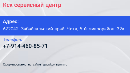 Кск, сервисный центр по адресу 672042, Забайкальский край, Чита, 5-й микрорайон, 32а в дальнейшем Организация, размещена в следующих категориях: