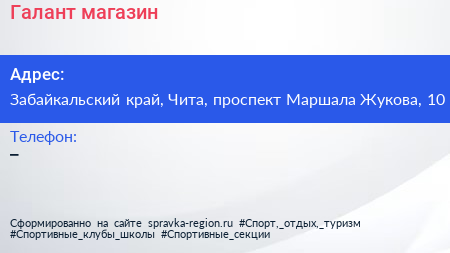 Галант, магазин по адресу Забайкальский край, Чита, проспект Маршала Жукова, 10 в дальнейшем Организация, размещена в следующих категориях: