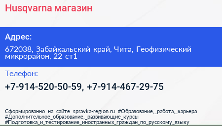 Husqvarna, магазин по адресу 672038, Забайкальский край, Чита, Геофизический микрорайон, 22 ст1 в дальнейшем Организация, размещена в следующих категориях: