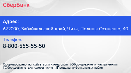 СберБанк по адресу 672000, Забайкальский край, Чита, Полины Осипенко, 40 в дальнейшем Организация, размещена в следующих категориях: