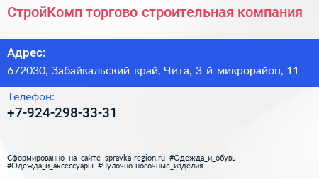 СтройКомп, торгово-строительная компания по адресу 672030, Забайкальский край, Чита, 3-й микрорайон, 11 в дальнейшем Организация, размещена в следующих категориях: