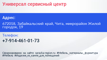 Универсал, сервисный центр по адресу 672018, Забайкальский край, Чита, микрорайон Жилой городок, 19 в дальнейшем Организация, размещена в следующих категориях: