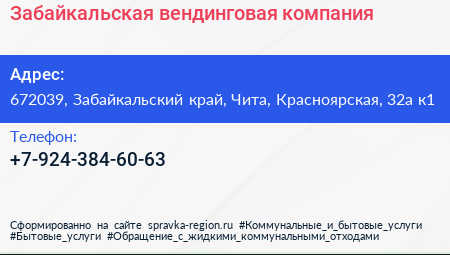 Забайкальская вендинговая компания по адресу 672039, Забайкальский край, Чита, Красноярская, 32а к1 в дальнейшем Организация, размещена в следующих категориях: