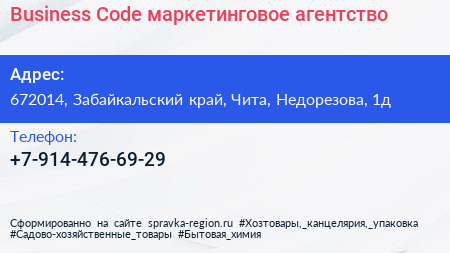 Business Code, маркетинговое агентство по адресу 672014, Забайкальский край, Чита, Недорезова, 1д в дальнейшем Организация, размещена в следующих категориях: