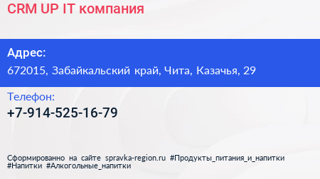 CRM-UP, IT-компания по адресу 672015, Забайкальский край, Чита, Казачья, 29 в дальнейшем Организация, размещена в следующих категориях: