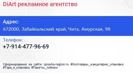 DiArt, рекламное агентство по адресу 672000, Забайкальский край, Чита, Амурская, 98 в дальнейшем Организация, размещена в следующих категориях: