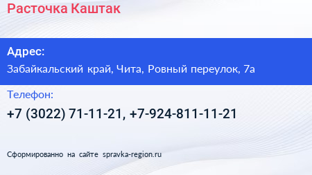 Расточка Каштак по адресу Забайкальский край, Чита, Ровный переулок, 7а в дальнейшем Организация, размещена в следующих категориях:
