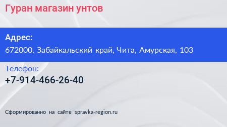Гуран, магазин унтов по адресу 672000, Забайкальский край, Чита, Амурская, 103 в дальнейшем Организация, размещена в следующих категориях: