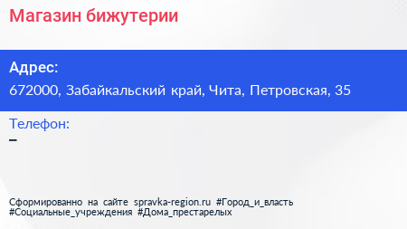 Магазин бижутерии по адресу 672000, Забайкальский край, Чита, Петровская, 35 в дальнейшем Организация, размещена в следующих категориях: