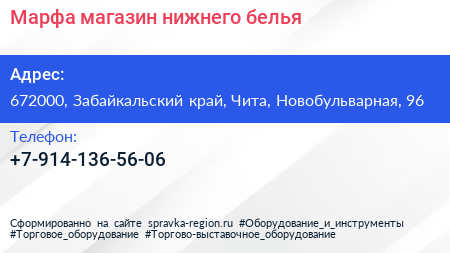 Марфа, магазин нижнего белья по адресу 672000, Забайкальский край, Чита, Новобульварная, 96 в дальнейшем Организация, размещена в следующих категориях:
