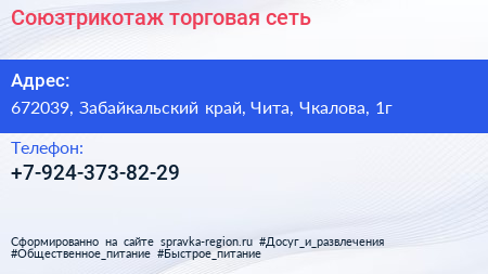 Союзтрикотаж, торговая сеть по адресу 672039, Забайкальский край, Чита, Чкалова, 1г в дальнейшем Организация, размещена в следующих категориях: