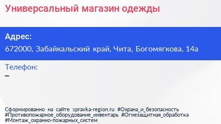 Универсальный, магазин одежды по адресу 672000, Забайкальский край, Чита, Богомягкова, 14а в дальнейшем Организация, размещена в следующих категориях: