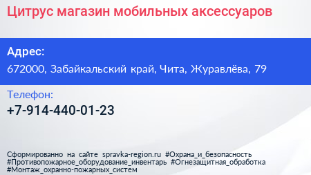Цитрус, магазин мобильных аксессуаров по адресу 672000, Забайкальский край, Чита, Журавлёва, 79 в дальнейшем Организация, размещена в следующих категориях: