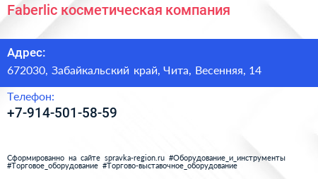 Faberlic, косметическая компания по адресу 672030, Забайкальский край, Чита, Весенняя, 14 в дальнейшем Организация, размещена в следующих категориях: