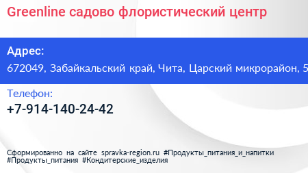 Greenline, садово-флористический центр по адресу 672049, Забайкальский край, Чита, Царский микрорайон, 5 в дальнейшем Организация, размещена в следующих категориях: