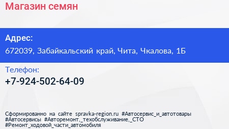 Магазин семян по адресу 672039, Забайкальский край, Чита, Чкалова, 1Б в дальнейшем Организация, размещена в следующих категориях: