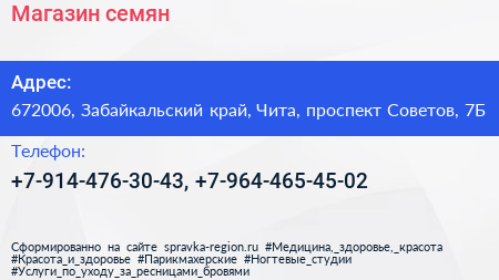 Магазин семян по адресу 672006, Забайкальский край, Чита, проспект Советов, 7Б в дальнейшем Организация, размещена в следующих категориях:
