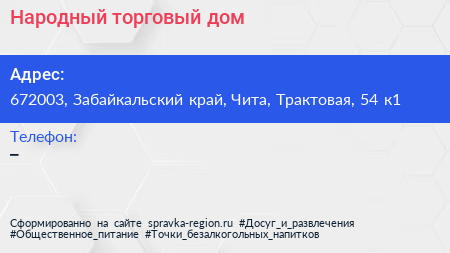 Народный, торговый дом по адресу 672003, Забайкальский край, Чита, Трактовая, 54 к1 в дальнейшем Организация, размещена в следующих категориях: