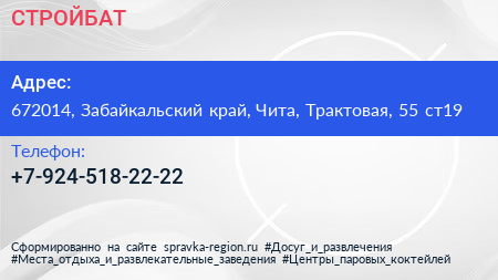 СТРОЙБАТ по адресу 672014, Забайкальский край, Чита, Трактовая, 55 ст19 в дальнейшем Организация, размещена в следующих категориях: