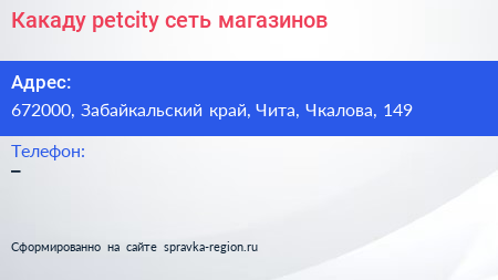 Какаду & #petcity, сеть магазинов по адресу 672000, Забайкальский край, Чита, Чкалова, 149 в дальнейшем Организация, размещена в следующих категориях: