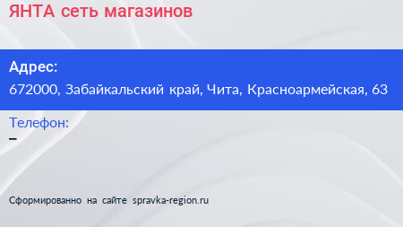 ЯНТА, сеть магазинов по адресу 672000, Забайкальский край, Чита, Красноармейская, 63 в дальнейшем Организация, размещена в следующих категориях: