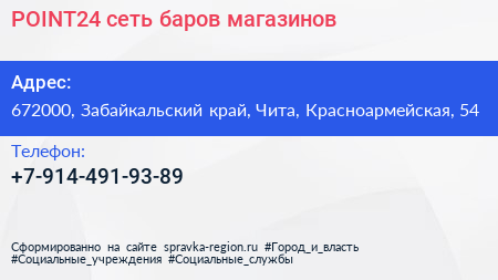 POINT24, сеть баров-магазинов по адресу 672000, Забайкальский край, Чита, Красноармейская, 54 в дальнейшем Организация, размещена в следующих категориях: