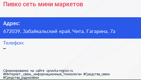 Пивко, сеть мини-маркетов по адресу 672039, Забайкальский край, Чита, Гагарина, 7а в дальнейшем Организация, размещена в следующих категориях: