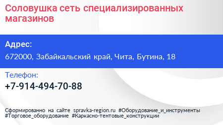 Соловушка, сеть специализированных магазинов по адресу 672000, Забайкальский край, Чита, Бутина, 18 в дальнейшем Организация, размещена в следующих категориях: