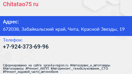 Chitatao75.ru по адресу 672038, Забайкальский край, Чита, Красной Звезды, 19 в дальнейшем Организация, размещена в следующих категориях: