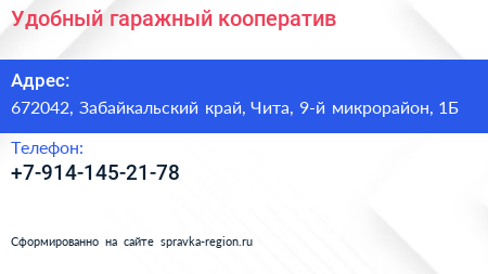 Удобный, гаражный кооператив по адресу 672042, Забайкальский край, Чита, 9-й микрорайон, 1Б в дальнейшем Организация, размещена в следующих категориях: