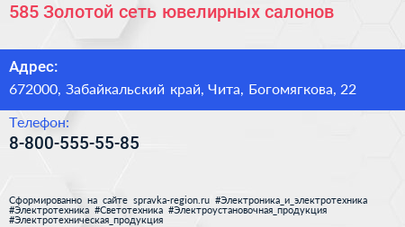 585 Золотой, сеть ювелирных салонов по адресу 672000, Забайкальский край, Чита, Богомягкова, 22 в дальнейшем Организация, размещена в следующих категориях: