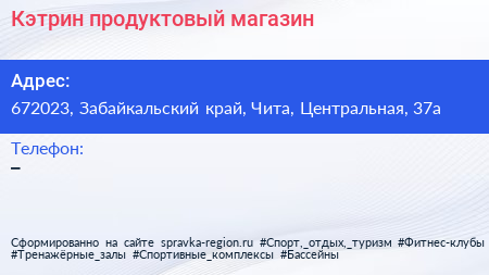 Кэтрин, продуктовый магазин по адресу 672023, Забайкальский край, Чита, Центральная, 37а в дальнейшем Организация, размещена в следующих категориях: