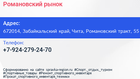 Романовский, рынок по адресу 672014, Забайкальский край, Чита, Романовский тракт, 55 в дальнейшем Организация, размещена в следующих категориях: