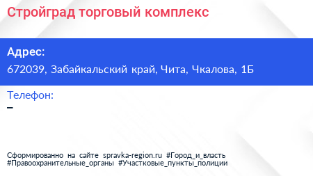Стройград, торговый комплекс по адресу 672039, Забайкальский край, Чита, Чкалова, 1Б в дальнейшем Организация, размещена в следующих категориях: